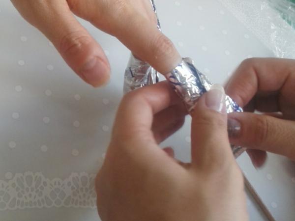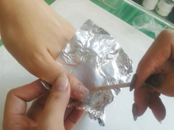 | 除光液を含ませたコットンをジェルの上に当て専用のアルミで包む | ||||||||