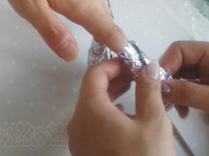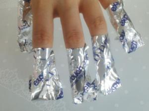 | 除光液を含ませたコットンをジェルの上に当て専用のアルミで包む | ||||